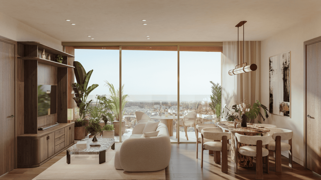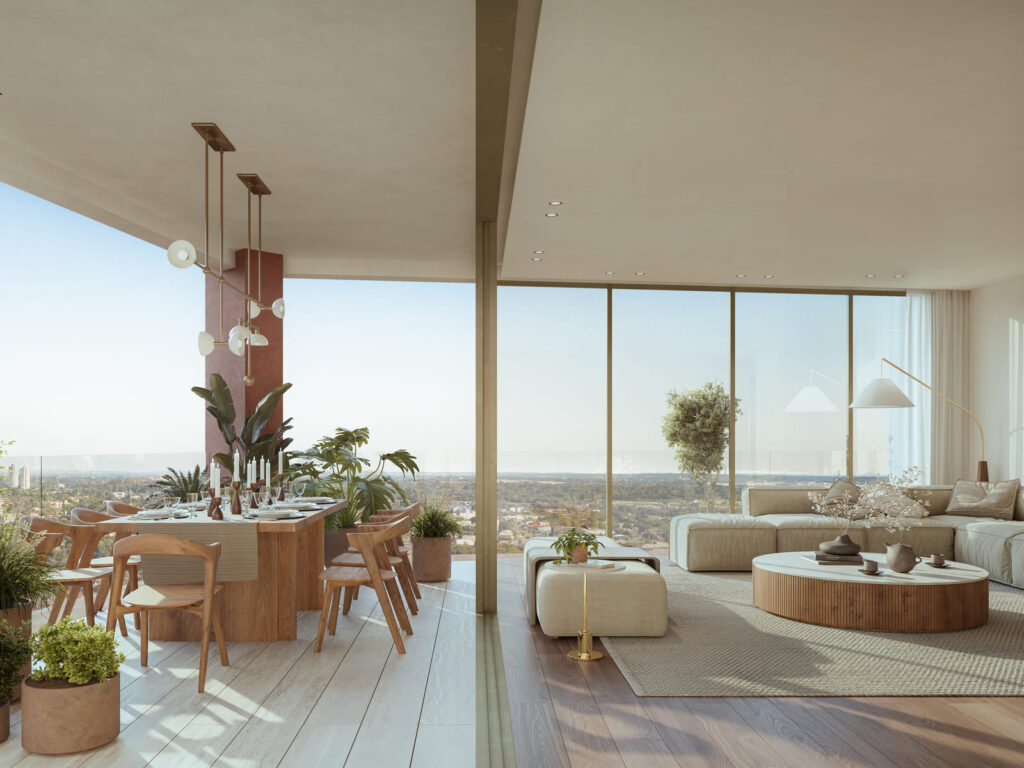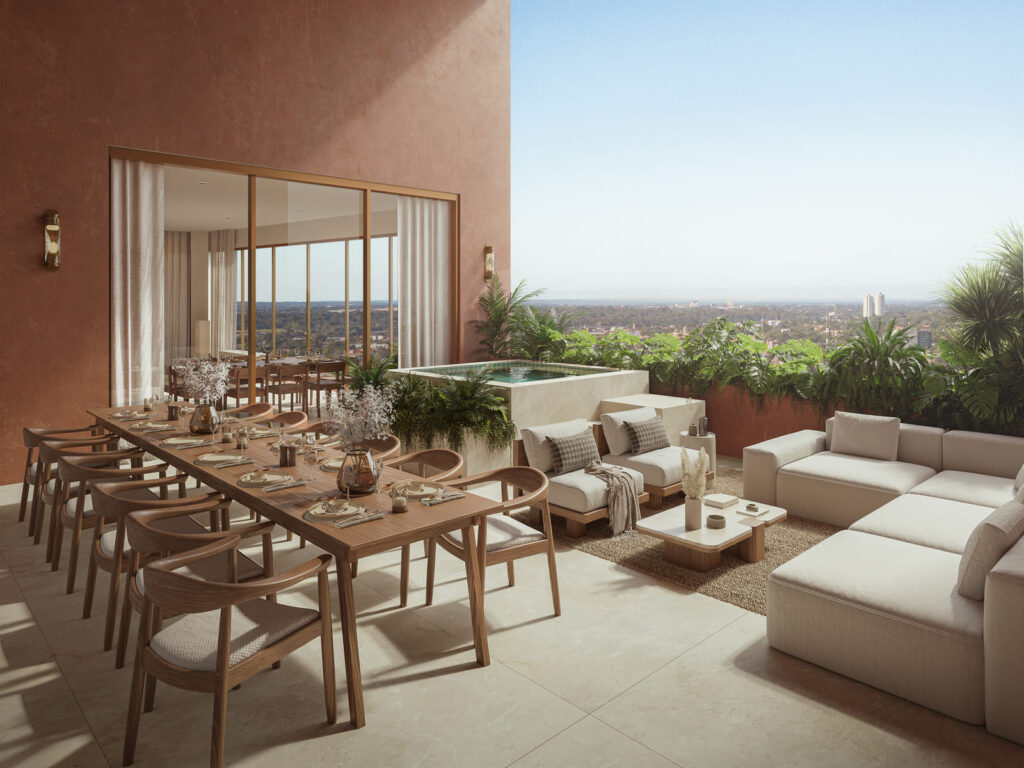 Bulnesia features exceptional landscape integration and premium amenities that enhance quality of life. Its sophisticated architectural spaces are carefully designed for 1, 2, and 3-bedroom apartments, as well as Sky Gardens, maximizing panoramic views of the District Perseverancia plazas, the city, and the river. The spacious perimeter terraces, adorned with vegetation, elevate the visual appeal of the environment and reaffirm Distrito Perseverancia’s commitment to sustainability.